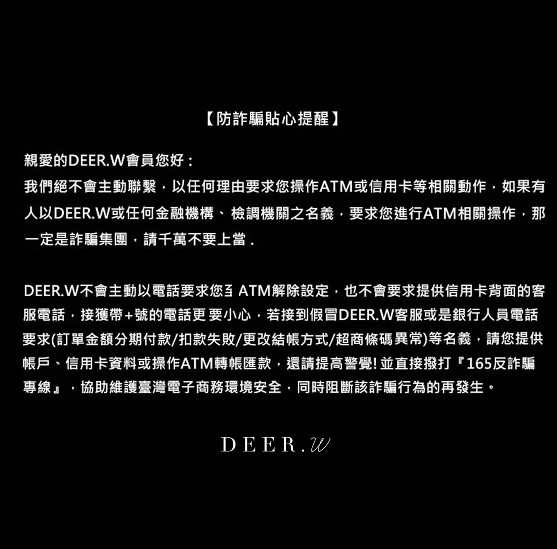 ※DEER.W保留修改、中止購物金方案之權利,若有修改或中止之情形,將公告於網站上,恕不另行通知會員